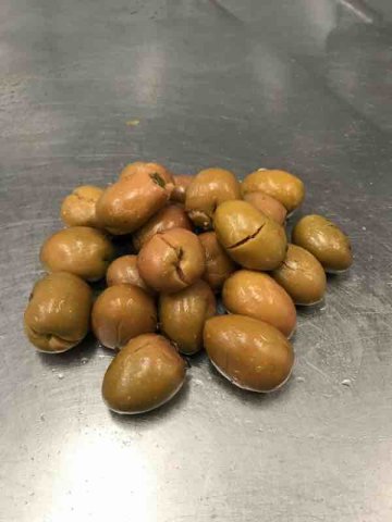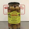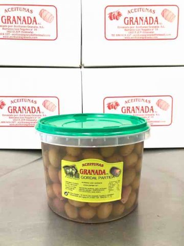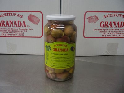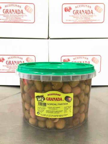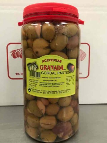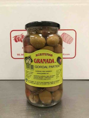 GORDAL PARTIDA Variedad apreciada fundamentalmente por su tamaño, de aspecto acorazonado y color verde o morado con pintas blancas. Su contenido bajo en aceite hace que su uso sea casi exclusivo para aderezo. Su tamaño puede alcanzar las 60-70 unidades/kilo.